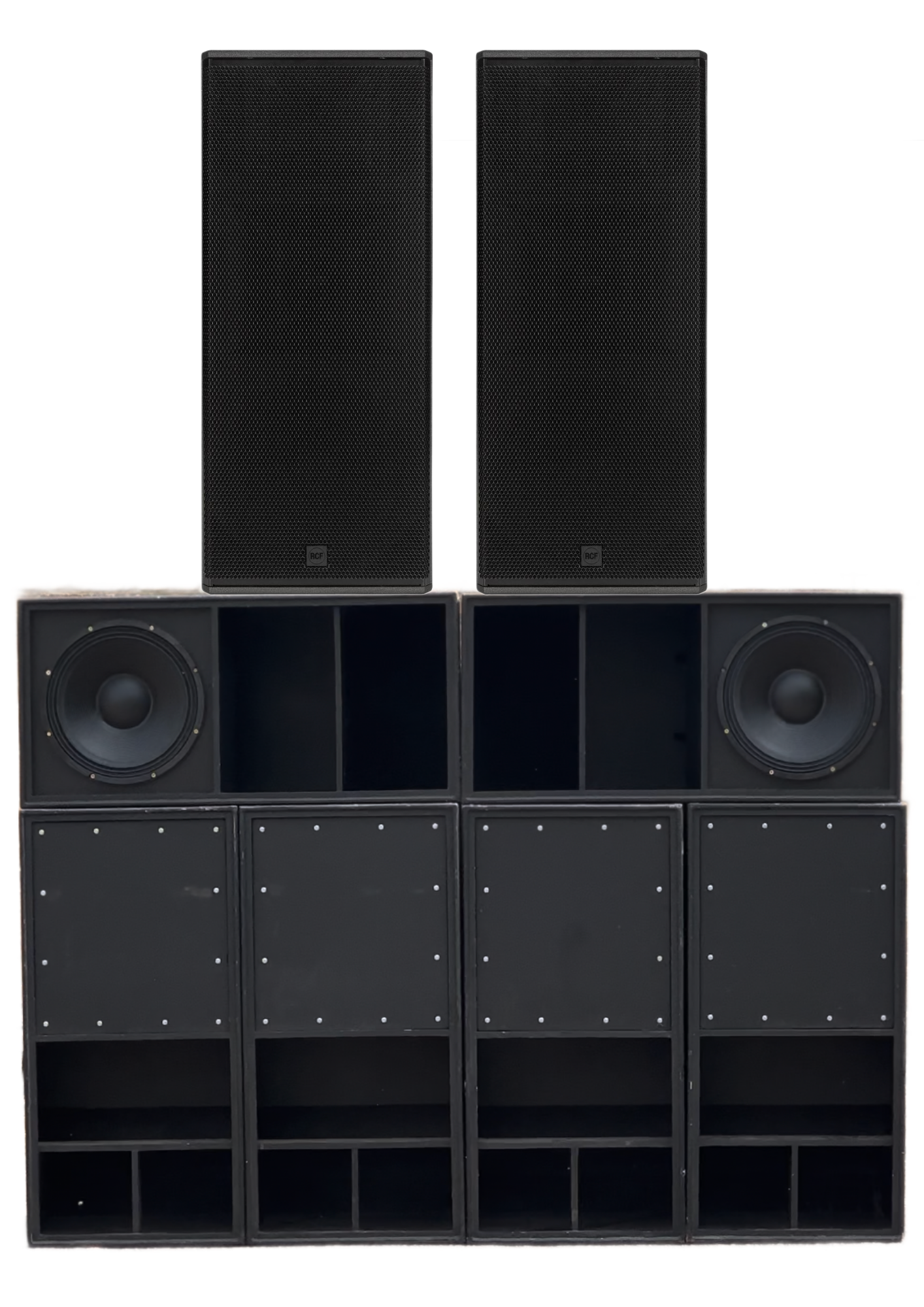 This powerhouse festival and corporate hybrid audio system is engineered to deliver jaw-dropping sound that dominates any large venue or outdoor stage. Combining two RCF NX 985 full-range loudspeakers, two 18″ 18NLW9601 scoop subwoofers, and four 21″ 21DS115 infra subwoofers, this rig provides a complete high-output solution that covers the full audio spectrum with unmatched precision, clarity, and intensity.From punchy low-end drops to crisp, articulate highs, every element of this system is designed to hit hard.